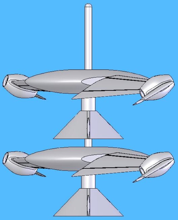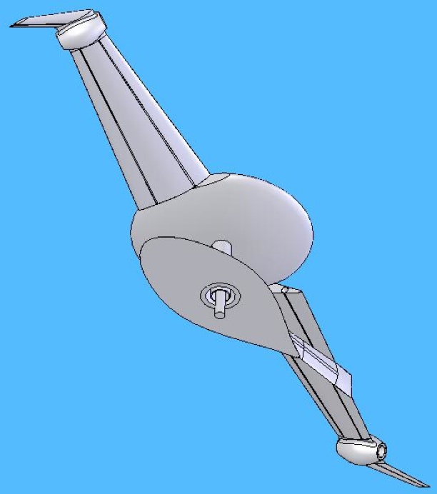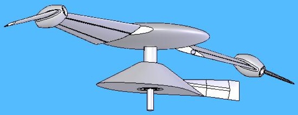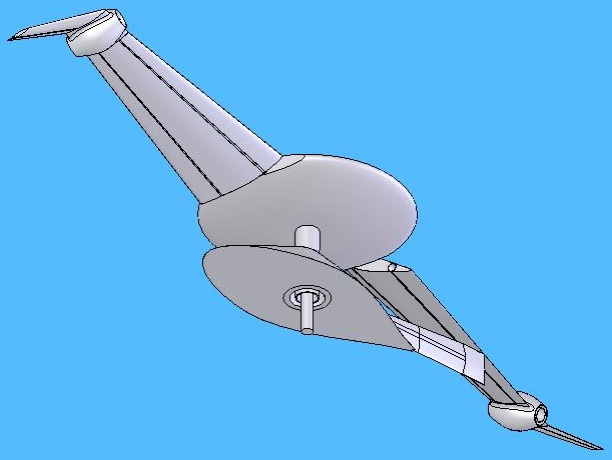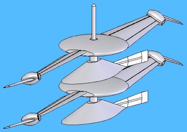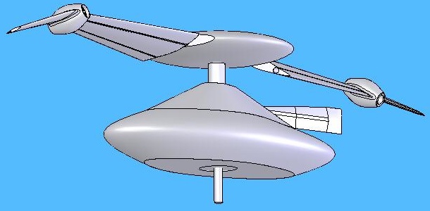 Here are various views of a Blade Flyer with an equipment module attached. The equipment module orients the payload and supplies power, climate control or other services to the payload.