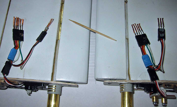 blade axle during assembly. Note the telephone connector on the right.