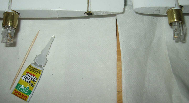 blade axle with retainer ring exposed on left and glued on right.
