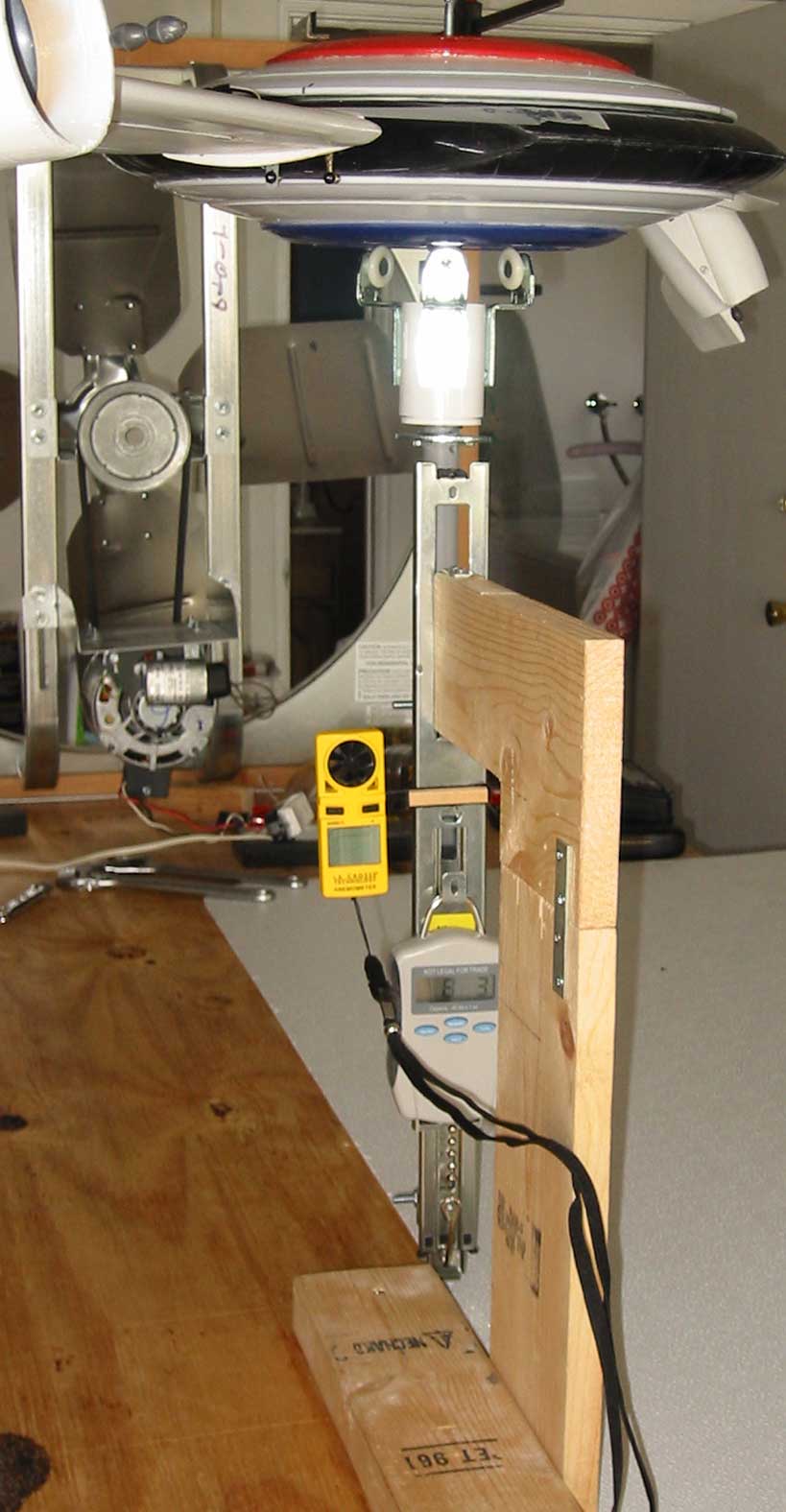 The vehicle assembly test rig includes a scale and anemometer mounted on