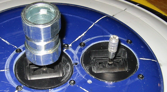 yaw-thrust joystick gimbal inverted in the bottom of the hub as
