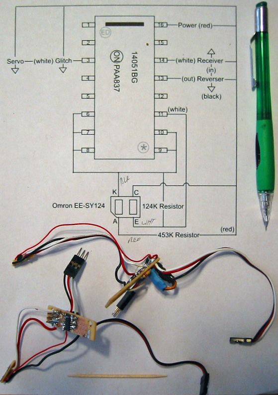 photo dector-Servo Reverser circuit on the side is shown. I included a